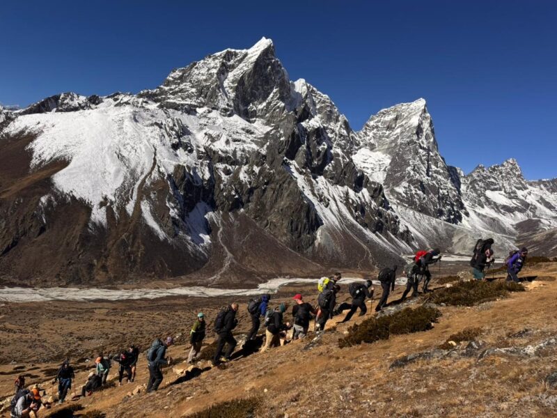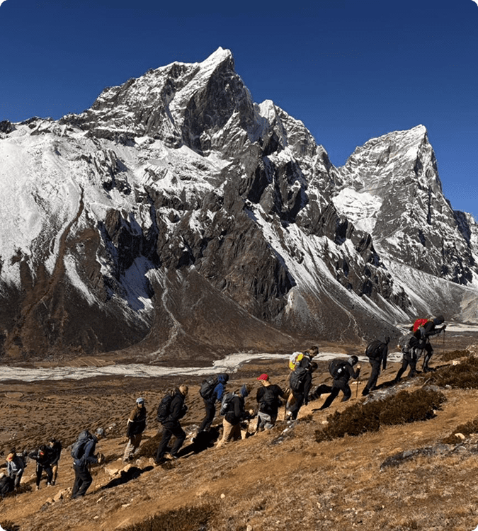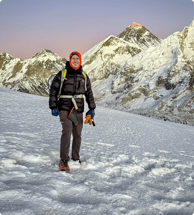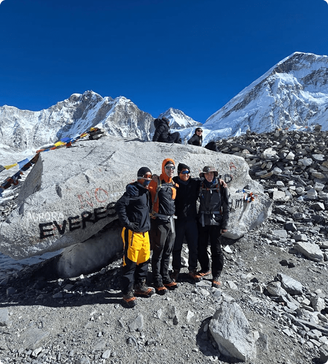 Meanwhile, across the globe, another EH crew was pushing their limits in the high Himalaya. Matthew Stewart, Sean Archer, Andrew Lao, and Custodian Award winner Tim Stephens journeyed from Kathmandu to the famous landing strip of Lukla, trekked through the Khumbu Valley to Everest Base Camp and Kala Patthar, and ultimately stood on top of Lobuche Peak (6,119m).